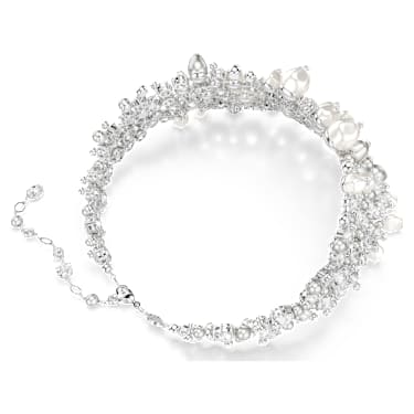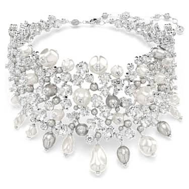 Radiant, elegant, and expressive, this Constella choker is the ultimate statement piece for a special occasion. Showcasing an intricate level of savoir-faire, the rhodium plated design features various sizes of clear crystals and white and gray Crystal Pearls, combining to create a truly refined appearance. Pair it with the matching clip earrings or brooch for a truly showstopping look.