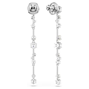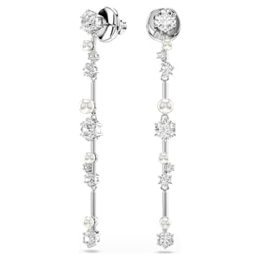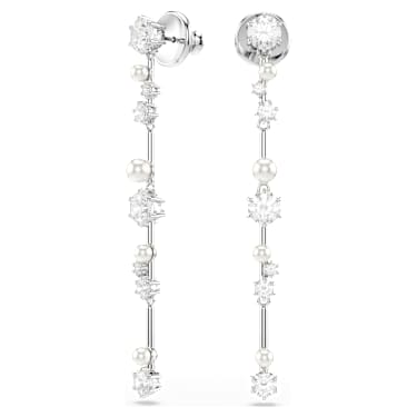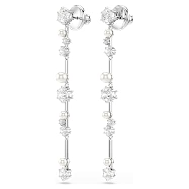 Like trails of stardust, these dangling Constella earrings are filled with magic and light. Each piece is rhodium plated and features a cluster of different-sized Zirconia and Crystal Pearls, which appear to float among the jewelry’s metallic bars. A sensational addition to any outfit that will enhance your cosmic glow.