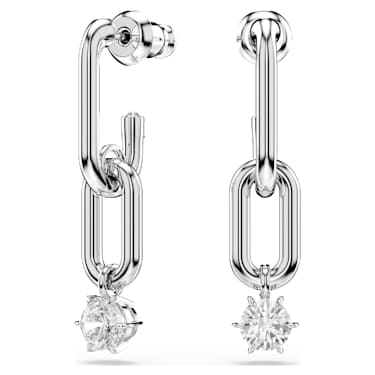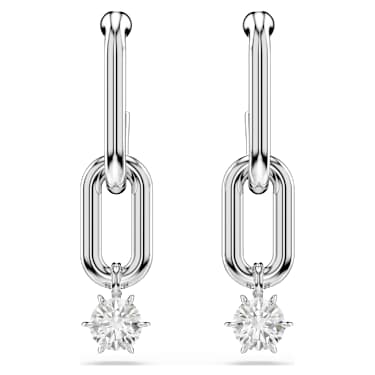 These playful earrings are a perfect choice for unexpected styling. Each piece features two interconnecting links in rhodium plating with a prong-set Zirconia that delicately hangs beneath. It’s a sleek, metallic look for any occasion, with an extra burst of light.
