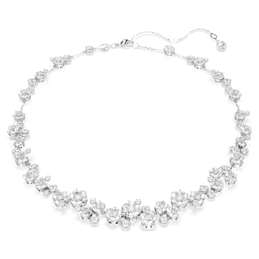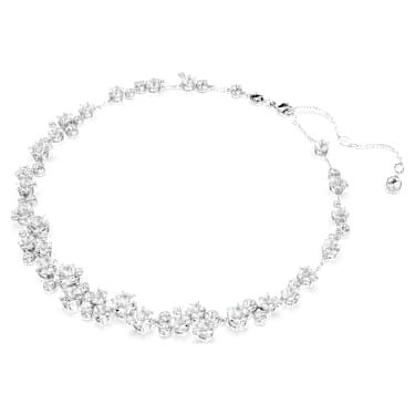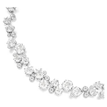 Bring starlike wonder into your style with this scintillating Constella necklace. The all-around design features round-cut crystals of various sizes, presented in a combination of bezel and prong settings. It has a beautiful, scattered appearance that glows brightly within the rhodium plated surrounding. Wear alongside the matching Constella bracelet to maximize the cosmic effect.