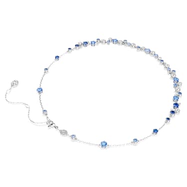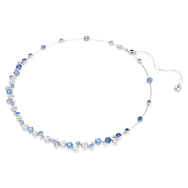 Reflecting the beautiful mysteries of the cosmos, this Constella necklace plays with both color and light. The all-around silhouette showcases a decoration of crystals and Zirconia, with a mix of captivating blue shades and clear tones that perfectly match the rhodium plated setting. The lobster clasp allows for an adjustable fit, giving you a wondrous accessory choice for your seasonal celebrations.