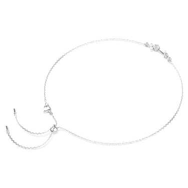 Launch your style into the stars with this versatile Constella creation. The rhodium plated design features a special pulling mechanism, allowing you to wear the jewelry as a necklace or a choker. At the front, the different-sized Zirconia and Crystal Pearls almost seem to float among the discrete articulations, producing a look of cosmic wonder. Play with the different styling possibilities and wear it alongside a matching ring for endless reflections of light.