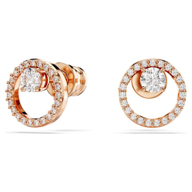 These refined circle studs exude timeless elegance. Each pierced piece is rose gold-tone plated and features a central pavé ring of clear Zirconia as well as a single prong-set Zirconia placed in the middle. Amp up the drama by pairing with a matching Constella pendant.