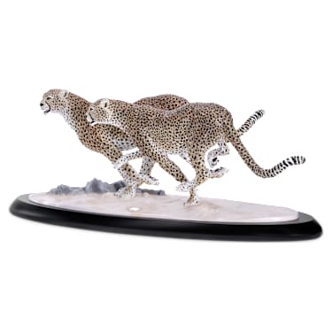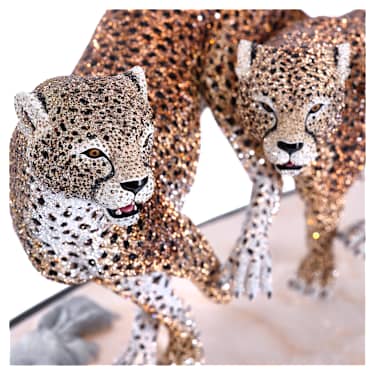 Captured in elegant and powerful motion, this exceptional sculpture displays the full potential of our Pointiage® technique, with an array of brilliant crystals that bring the animals to life. The dynamic design features two sprinting cheetahs on the African savannah, with typical tear-shaped stripes from the eyes to the mouth and spotted fur that is detailed to the highest level of mastery. The name Asuga means “swift” and “wind”, a perfect representation of the style of this piece. This creation will enhance any home as a testament to the uniqueness and beauty of these animals, as well as the importance of protecting their delicate habitat. This piece is made to order. Decoration object. Not a toy. Not suitable for children under 15.