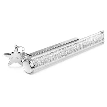 This 2026 Annual Edition ballpoint pen offers a timeless accessory for endless creativity. The slimline design is filled with around 400 clear crystals, which are visible through the long transparent window. Along with a lacquered white barrel, the pen includes chrome finishing for an ultra-luxurious look. A radiant star charm is featured at the end of the pen, with the year 2026 engraved on the back. Refills of black and blue inks are available to purchase in stores.