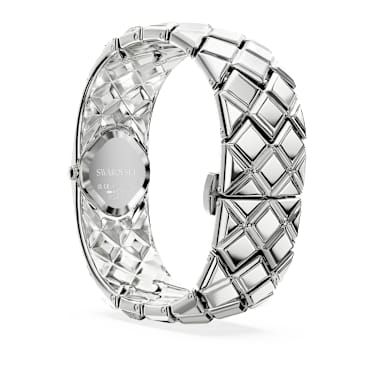 With a total of 47 crystals, the luxurious spirit of Curiosa is beautifully expressed in this bangle-style timepiece, which showcases’s heritage and savoir-faire. The stainless steel design is a vintage-era tribute, featuring a 20mm (w) x 20.5mm (l) case that sits neatly within a stunning bracelet set with triangle- and fancy-cut crystals. The dial also includes crystals at the quarter hour markers. A glowing accessory for your most sophisticated occasions, this watch is water resistant to 50 meters and reveals the iconic Swan logo at 12 o’clock.