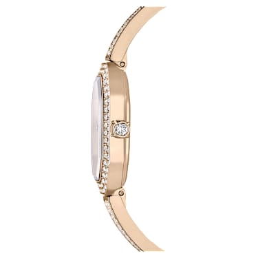Capturing the beauty of iconic octagon shape, this Dextera bangle watch offers a meticulous display of symmetry around the wrist. The 20mm x 30.5mm case features a champagne gold-tone finish and is adorned with a pavé of 92 crystals on the bezel. This provides a perfect frame for the sunray dial, which features a swan logo at 12 o’clock and three crystallized index markers. Along with a single dazzling stone set in the crown, the watch is also brought to life by 194 crystals set along the adjustable bracelet, providing exceptional beauty at every hour. This Swiss made watch is water resistant to 30m and combines joyful extravagance with signature savoir-faire.