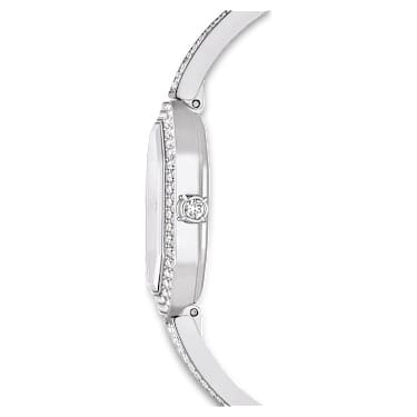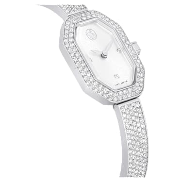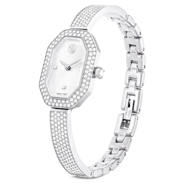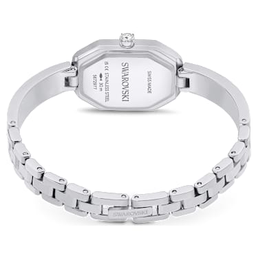 Crafted in the iconic octagon shape of, this unique Dextera bangle watch is made for maximum glamour. The stainless steel case is 20mm x 30.5mm and is adorned with a pavé of 92 crystals on the bezel. This provides a perfect frame for the sunray dial, which features a swan logo at 12 o’clock and three crystallized index markers. Along with a single dazzling crystal set in the crown, the watch is also brought to life by 194 crystals set along the adjustable bracelet, providing exceptional beauty at every hour. This Swiss made watch is water resistant to 30m and combines joyful extravagance with signature savoir-faire.