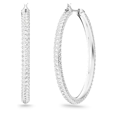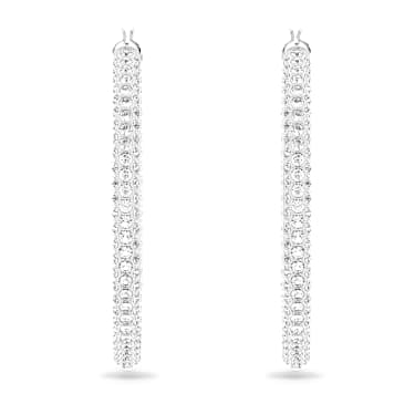 Find the perfect gift for Mother’s Day or any other occasion with this timeless pair of hoops, decorated with crystal pavé for that special sparkle. The delicate, rhodium-plated design is easy to wear with any outfit, from day to evening.
