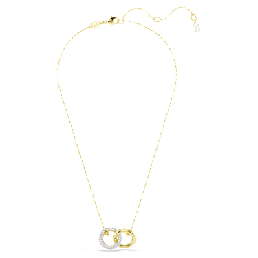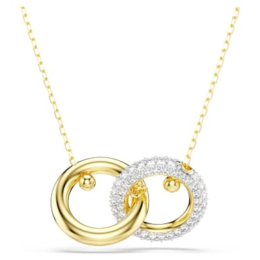 Embrace the spirit of unity with this pendant from the Dextera family. The gold-tone plated design features two interlinked tubular rings, one shimmering with all-over pavé. The delicate chain includes a single Zirconia adorning the end for added luxury. Combining bold shapes with radiant clear crystals, this spellbinding piece will maximize your style.