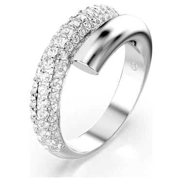 The beauty of this technically refined Dextera ring shines through every detail. The tubular design is rhodium plated, and half encrusted with a dazzling pavé of clear crystals. Stack with a contrasting gold-tone ring to create a look that challenges convention.