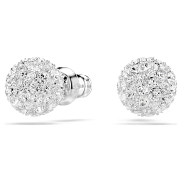 Blending playful geometry with shimmering light, these Dextera studs were made for joyful styling. Each sphere is rhodium plated and amplified with offset pavé and mixed sizes of crystals. Wear them together for symmetrical sophistication or mix and match with the star-shaped studs from the same multifaceted family.