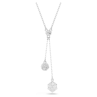 Redefine your style with this creative Dextera pendant. The rhodium plated design is suspended from an elongated chain and features a 3D sphere and cube, each adorned with a pavé of shimmering clear crystals. Pair this pendant with other Dextera pieces for full-beam geometric brilliance.