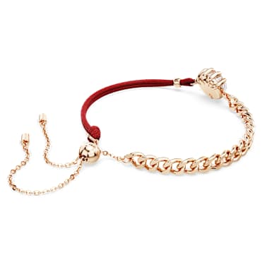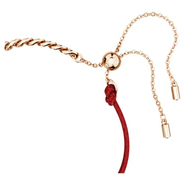 Crafted for the Year of the Dragon, this inspired bracelet is a perfect example of savoir-faire. The rose gold-tone plated design features a central dragon’s claw, which holds on tightly to a lucky coin adorned with a pavé of clear crystals. Around the wrist, the bracelet features a linked chain on one side, and red fabric on the other. Bright and energizing, this jewelry would make a perfect gift for a loved one.