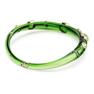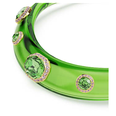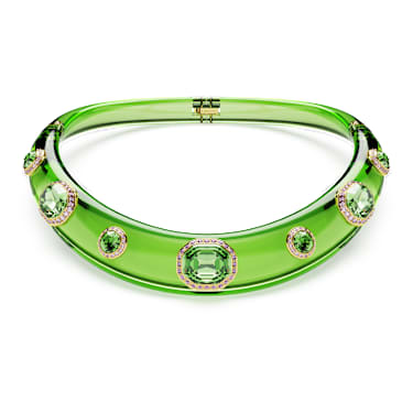 Hypnotic yet joyful, this statement choker is one of most mesmerizing candy creations. The vivid design features a green band, with alternating round and octagon-cut green crystals, each surrounded by glittering pink pavé in a gold-tone plated frame. A piece of jewelry that will instantly energize your style and express your most playful side.