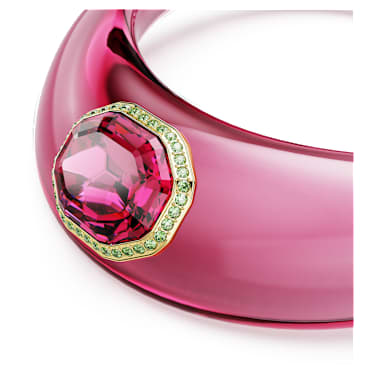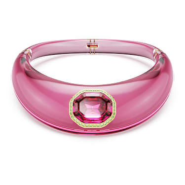 Joyful and bold, this statement choker is one of most vibrant candy creations. The vivid design features a large pink band, with a central octagon-cut crystal in pink, which is surrounded by glittering green pavé in a gold-tone plated frame. A piece of jewelry that will instantly energize your style and express your most playful side.