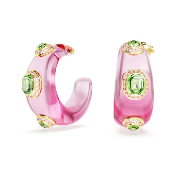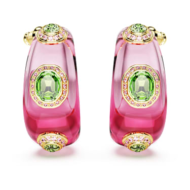 These vibrant Dulcis earrings were made for instant color impact. Each candy-inspired piece features an open pink hoop, with one octagon- and two round-cut green crystals surrounded by glittering pavé in gold-tone plated frames. A playful way to dress up your style and face the day with infinite energy.