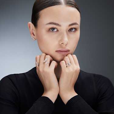 Shimmering like a trail of stardust, this asymmetric ring is filled with light-catching drama. The 14K white gold design features a spiraling band, which is adorned with laboratory grown diamonds in various fancy shapes. Embrace the magic of the cosmos by pairing this ring with a necklace or earrings from the same family. This jewelry is IGI (International Gemological Institute) certified and is part of the Galaxy collection created by Giovanna Engelbert.