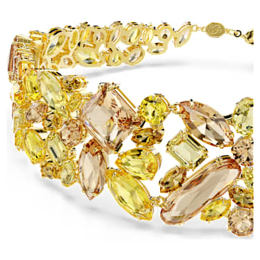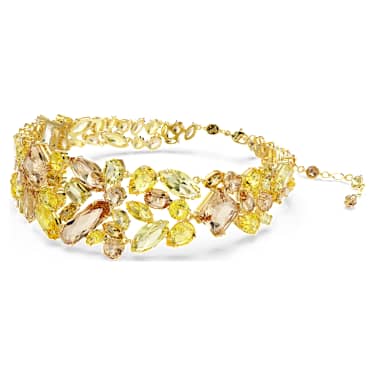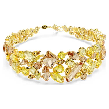 Illuminate the glamorous side of your style with this statement Gema choker. The head-turning design is gold-tone plated and features 99 different shapes of crystals in a radiant mix of yellow and amber tones. Arranged into one dynamic silhouette, this choker is emblematic of Gema’s unexpected formations and vibrant beauty, and glows even brighter when worn alongside matching jewelry pieces from the same family.