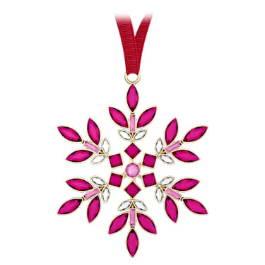 Inspired by the vibrant Gema family, this collection of radiant snowflake ornaments is presented in brand colors with a nod to the holiday season. This red piece is formed from 86 individual crystals in a variety of cuts and shades, applied on both sides using jewelry stone setting techniques. The design is suspended from a red grosgrain ribbon and is completed with a glossy gold-tone finish. Collect all four of the Gema snowflake ornaments to create a joyful multicolored display in your home. Decoration object. Not a toy. Not suitable for children under 15.