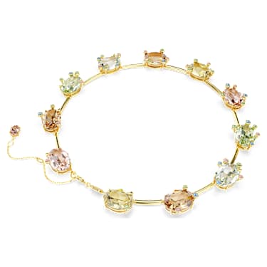 Imagination meets wonder in this kaleidoscope of color. The gold-tone plated necklace features a full surround of large crystals in multiple vibrant hues, each surrounded by smaller crystals in a joyful bubble prong setting. The effect is effervescent, giving you a mood-boosting piece of jewelry for everyday wear. Pair this necklace with a matching bracelet to accentuate the joy.