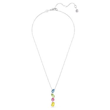 Infuse your style with joy and color. This captivating pendant is rhodium plated and features a set of suspended single crystals shimmering in brand shades. The candy-tone design is bright, energizing, and irresistible. Match seamlessly with similarly vibrant pieces from the Gema family.