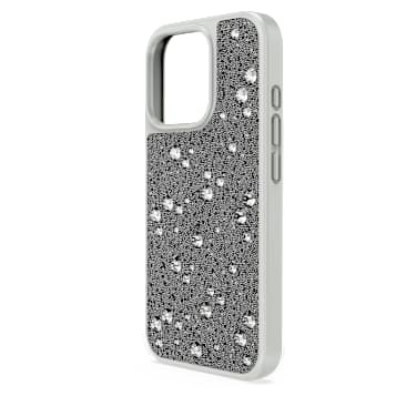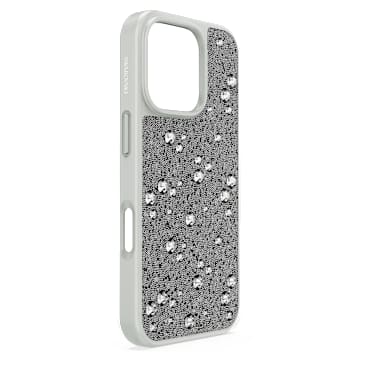 Glamour radiates from this shimmering smartphone case. Compatible with the iPhone® 16 Pro and official Apple® chargers, the joyfully extravagant case features silver Crystal Fabric embellished with tone-on-tone flatbacks in varying sizes. A dazzling gift idea or a unique way to adorn your phone with pop luxury. iPhone® is a registered trademark of Apple Inc. Apple® is a registered trademark of Apple Inc.