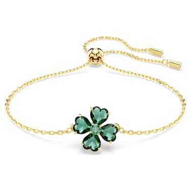 This charming bracelet from the Idyllia family will add a touch of luxury to any look. The gold-tone plated design features a green clover motif crafted from four heart-shaped crystals arranged around a central stone, which sits on a chain with an adjustable closure. Match this bracelet with a pair of Idyllia clover earrings and be inspired by nature.