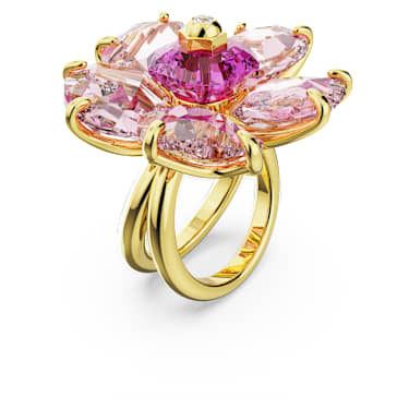 Unfolding before your eyes in a bloom of pink crystals, this extraordinary Idyllia ring is a true sight to behold. Set around a vibrant central stone, each faceted petal is held in place on a shining gold-tone plated setting, while the ring itself is double shanked to fit snugly around the finger. Wear this beautiful piece to brighten your everyday style.