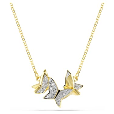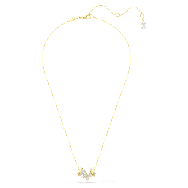 An elegant choice for everyday, this delicate necklace will become a new wardrobe staple. It features shimmering pavé butterfly motifs suspended from a gold-tone plated chain. The perfect partner to white T-shirts, cashmere jumpers, denim, or eveningwear – essentially, anything goes.