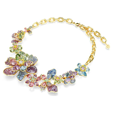Immerse yourself in nature, as this showstopping necklace comes to life with color and joy. The gold-tone plated design features a seamless blend of flowers and butterflies, each crafted with a variety of crystals in different shapes, shades, and sizes. With pavé, Pointiage™, and chatonnage techniques being used, this Idyllia necklace is a stunning example of savoir-faire, and the ultimate choice for extravagant style.