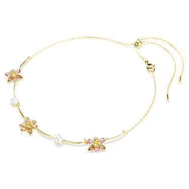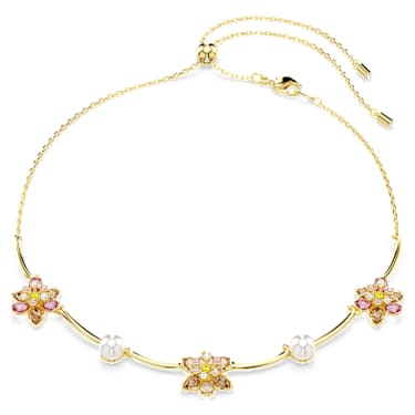 Nature and luxury are combined in this delicate yet stunning Idyllia necklace. On an adjustable chain, the all-around design features gold-tone plated bars, interspersed with Crystal Pearls and three flowers, each made of crystals in various cuts and soft colors. It’s a touch of joyful elegance that pairs perfectly with a matching bracelet, brooch, or earrings.