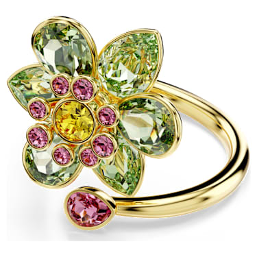 Take your nature-inspired style to the next level with this glittering motif ring. The gold-tone plated band spirals around the finger with a central flower crafted from green, pink, and yellow crystals. The different shapes and shades ensure there is magic to be found in every detail. Combine this ring with a matching Idyllia pendant to achieve an all-over look of color and joy.