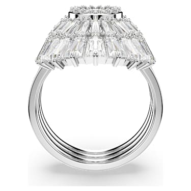 These stackable rings from the Hyperbola family are the perfect way to bring versatility into your style. Inspired by the beauty of the ocean, the rhodium-plated designs form a shell-like design, and can be worn individually or as a full set of three. The two outside rings feature a fan of clear Zirconia, while the central ring is presented with a halo of small clear crystals and a radiant dancing crystal that catches the light. A statement set that will add instant impact to your look.