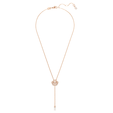 Embrace the tranquility of the sea with this ocean-inspired pendant from the Idyllia family. The shell design is rose gold-tone plated and embellished with an array of clear Zirconia and a clear round dancing crystal that catches the light. Worn on a delicate chain, the jewelry is completed by a single white Crystal Pearl that elegantly hangs beneath. A calm and radiant addition to your everyday style.