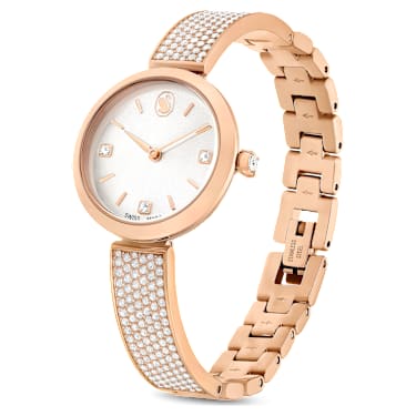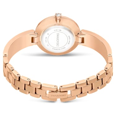 Illumina watches are crafted for sensational beauty around the wrist. This 27mm model features a rose gold-tone finish and an adjustable bracelet that is neatly adorned with 210 clear crystals. Beneath the mineral glass, the sunray dial has a swan logo at 12 o’clock as well as three square crystals for index markers. Along with a single crystal placed in the crown, this Swiss made watch is water resistant to 50m and is designed to keep you on time with light-catching radiance at all hours of the day or night.