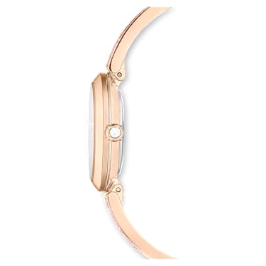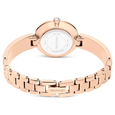 Romance shines through this exquisite Illumina timepiece. The 28mm stainless steel case has a rose gold-tone finish and features a single crystal set within the crown. With elegance and simplicity in mind, the dial is crafted from pink mother-of-pearl and includes pink crystals on three of the index markers, along with a swan logo at 12 o’clock. The dazzling design is completed with an adjustable gold-tone bracelet that is adorned with 210 pink crystals. Water resistant to 50 meters, this Swiss made watch is the perfect gift for someone special or yourself.