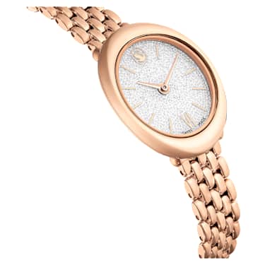 The Imber timepiece conveys a modern approach to watchmaking through its glittering dial and timeless elliptical shape. This 24 x 26.3 mm stainless steel version is rose gold-tone finished and features around 1000 clear crystals on its Crystalline dial. Amongst the slender hour markers, a single Roman numeral is displayed at 6 o’clock, while iconic swan is placed at 12 o’clock. The Swiss Made watch is worn on a polished metal bracelet and offers a water resistance of 50m. Make this your go-to choice for sophisticated day-to-night styling.