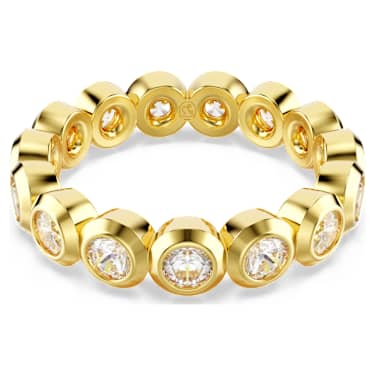 Crafted like a halo of light, this stunning Imber ring is gold-tone plated and masterfully decorated with a full circle of round-cut Zirconia, each placed in a modern bezel setting. An eye-catching addition to any outfit, it will provide effortless glamour, day or night.