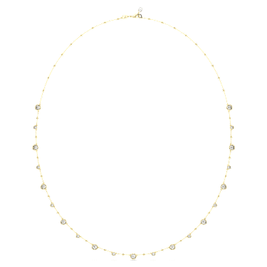 This long piece of jewelry is perfect for layering and will bring a touch of sophistication to your style. The design features a gold-tone plated chain, accented with an array of shiny metal droplets and dazzling round-cut crystals in a puffy bezel setting. A single Zirconia is also placed in the elongation for added luxury. An easy and instant way to elevate any casual look.