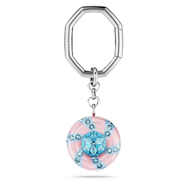 Inspired by the Dulcis family, this candy-colored key ring was made for joy-infused style. Attached to a rhodium plated link, the round motif is embellished with playful pink and blue stripes, a round central crystal, and a captivating swirl of smaller blue crystals. It’s ideal for accentuating your own Dulcis jewelry, or the perfect gift to brighten someone’s birthday.