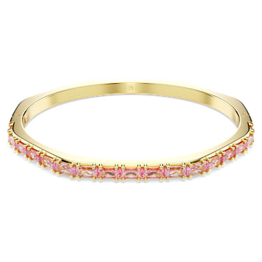 Ignite your everyday look with this hinged Matrix bangle. The gold-tone plated design is crafted in emblematic octagon shape and is playfully adorned with a gradient of pink baguette-cut Zirconia in a horizontal setting. Perfect for stacking alongside matching Matrix bangles, it’s a full surround of signature color to express your most vibrant self.