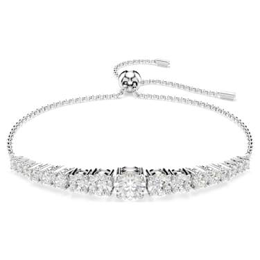 This radiant Matrix Tennis bracelet is a perfect way to let your personal style shine. Worn on a delicate chain with a sliding ball closure, the rhodium plated design is adorned in a gradient of round-cut Zirconia, each faceted for light-reflecting wonder. Enhance the look of luxury by pairing the jewelry with a set of matching earrings or a necklace.