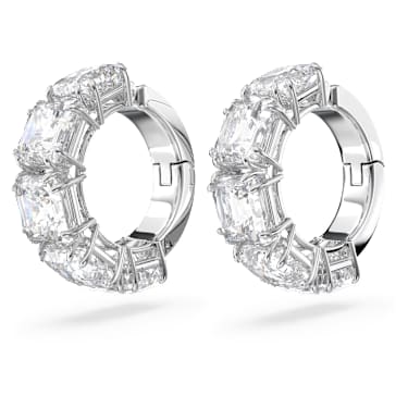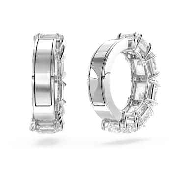 The essential style of our Matrix family is masterfully displayed in these shining clip earrings. A uniform row of clear square-cut stones is set in rhodium plating, igniting a harmonious balance of metal and crystals. It’s a dazzling look that can be enjoyed any time – day or night.