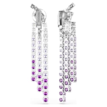 Celebrate your individuality with these colorful and fearless clip earrings. Each joyful piece is rhodium plated and features three long strands of round-cut Zirconia in a gradient of purple and clear tones. A showcase of artistry and imagination that was born for the spotlight.