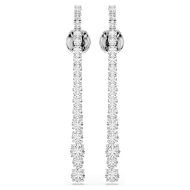 These dramatic trails of light are the perfect showcase of illuminating style. Each rhodium plated piece features two strands of Zirconia, presented in a clear hue and a rising gradient of sizes. The effect is both elegant and bold, giving you an expressive pair of pierced earrings for any special occasion.