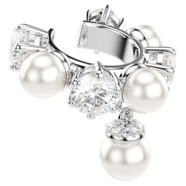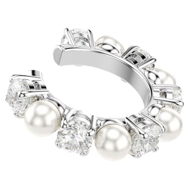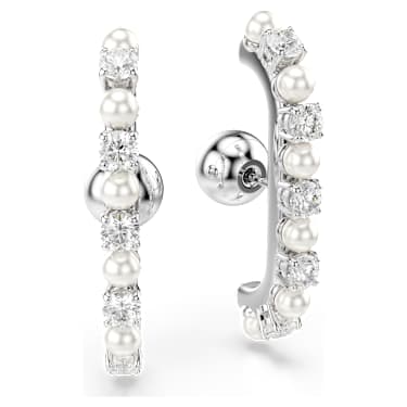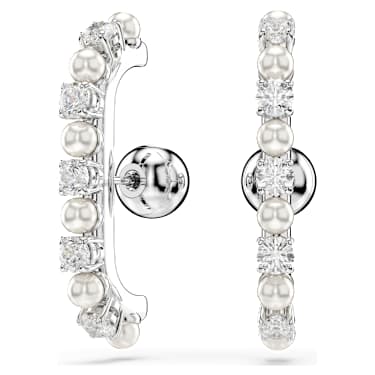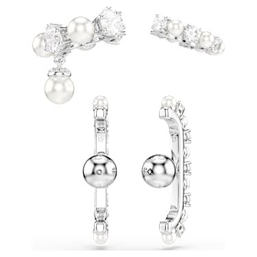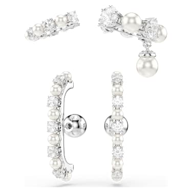These stunning pieces multiply the elegance by four. The full set of two pierced earrings and two ear cuffs is rhodium plated and crafted with a variety of round Zirconia and Crystal Pearls, all combining to make a modern yet captivating impression. Play with the positioning to create a look that expresses your own personal style.