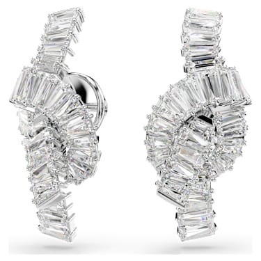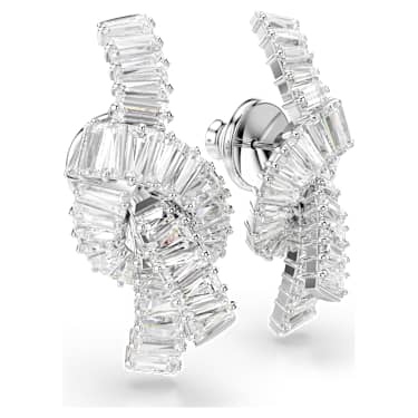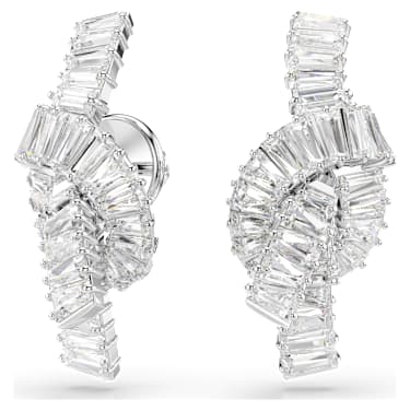 Signifying an unbreakable bond, these Matrix earrings are designed with a unique woven style. Taking the form of a ribbon, each twisted motif is rhodium plated and features a sophisticated adornment of baguette-cut Zirconia in prong settings. Reach for these earrings when sophistication is called for – and pair them with the matching Matrix jewelry pieces for a coordinated look.