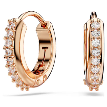 Ignite your style with these shimmering mini hoops. The pierced earrings are rose gold-tone plated and adorned with clear prong-set Zirconia on the outer section. An easy way to illuminate any outfit.
