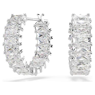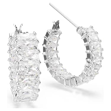 Reinvent your mini hoop style with this bright dose of Matrix light. Each rhodium plated earring is set with baguette-cut Zirconia in prong settings, adding a halo of radiance to any outfit. Pair them with an all-around Matrix necklace for an all-over glow.